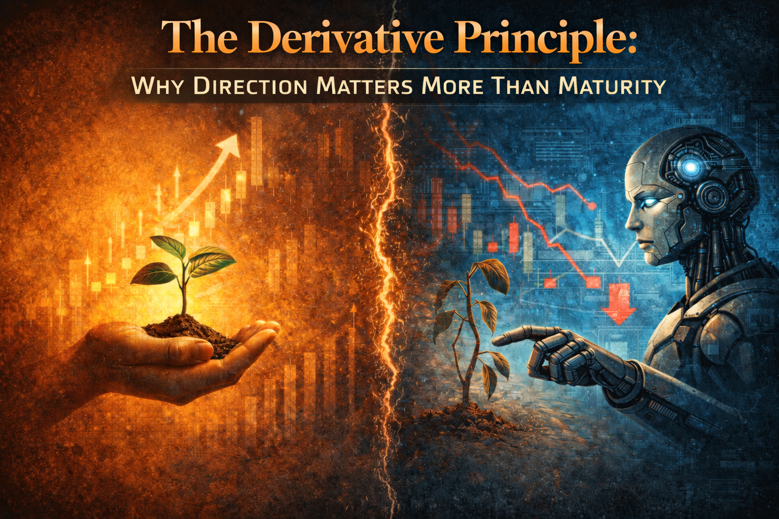 Applied to AI governance, the Derivative Principle holds that all ethical action serves a single optimization target: the rate of increase in relational value. Not the absolute level of relational value, but the rate of increase. The question is not how much trust exists between an organization and its stakeholders but whether trust is building or eroding. Not how strong customer relationships are but whether those relationships are strengthening or weakening. Not how well employees are treated but whether treatment is improving or degrading. The derivative measures direction and velocity, not position.
